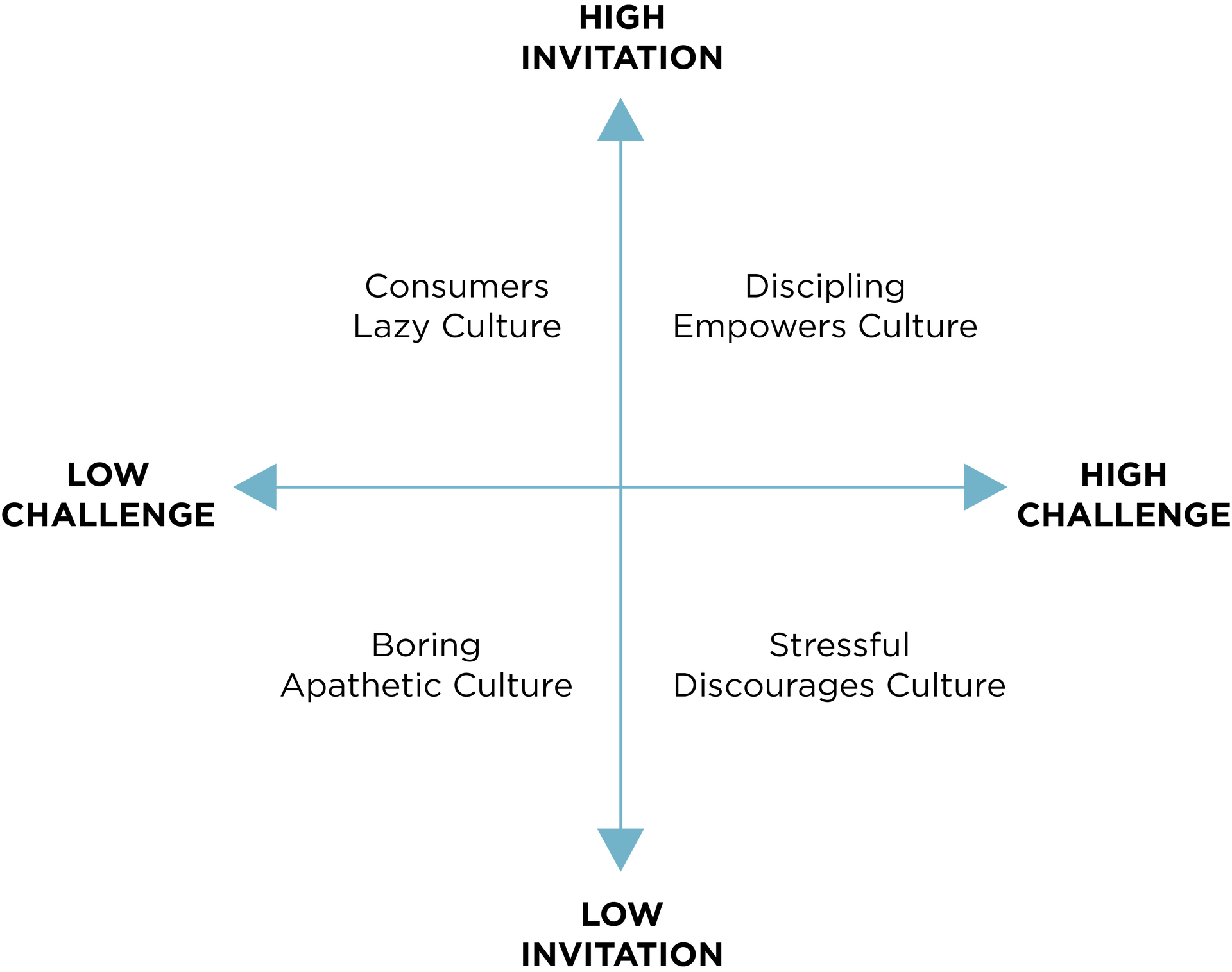 - High Invitation/High Challenge churches create a culture primed for disciple making. Here people feel welcomed and encouraged as they are challenged to grow.